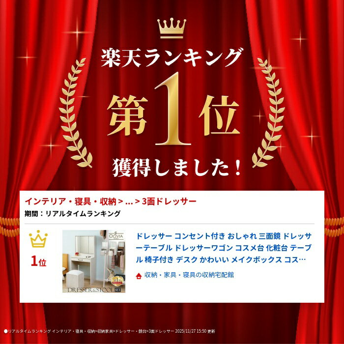 ドレッサー コンセント付き おしゃれ 三面鏡 ドレッサーテーブル ドレッサーワゴン コスメ台 化粧台 テーブル 椅子付き デスク かわいい メイクボックス コスメ収納 収納ボックス 収納 ドレッサー【AR対応】