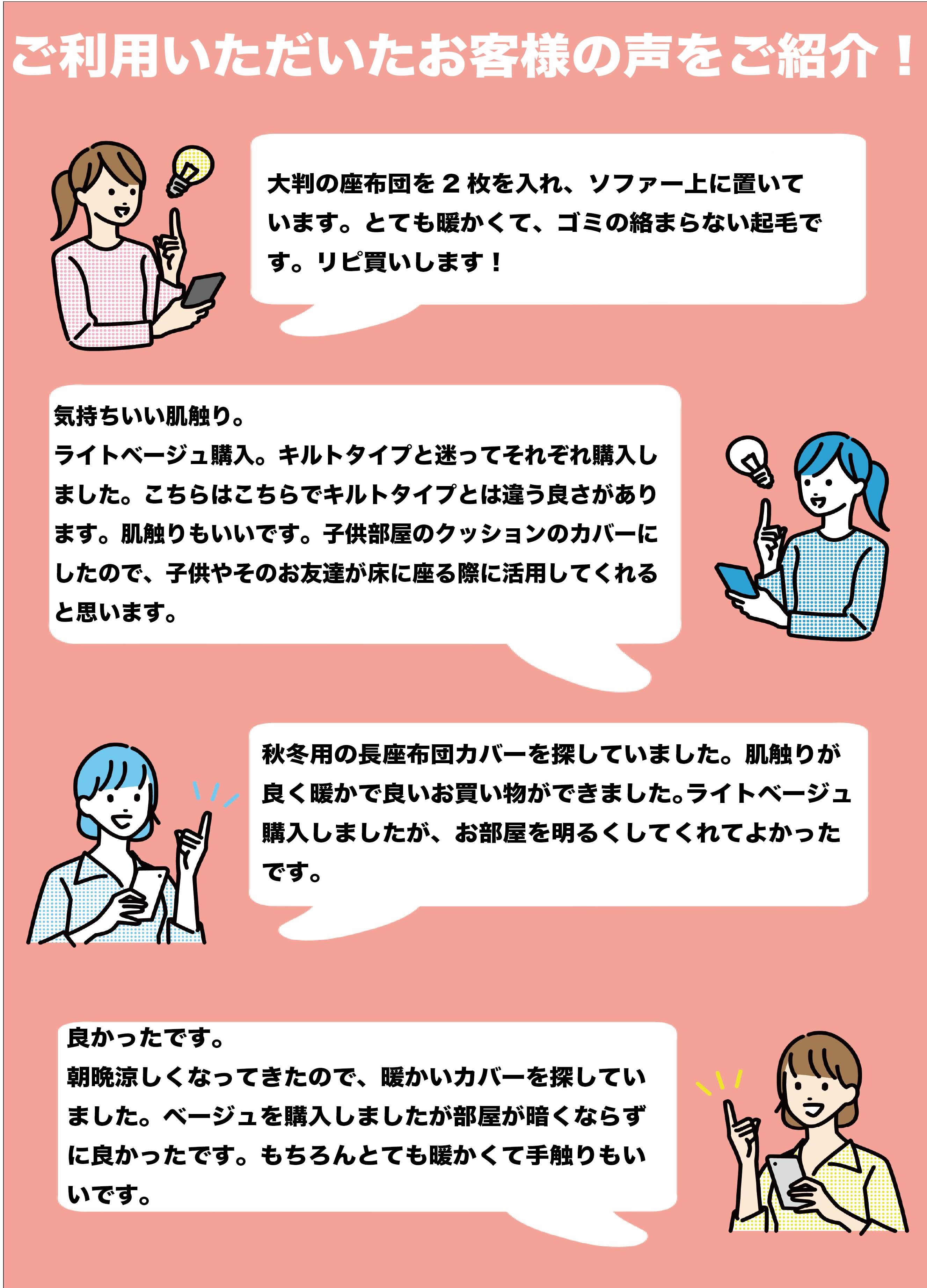 あったか起毛の長座布団カバー 長座布団がクッションに変わるやわらかい 肌触り の カバー で 秋 冬 はもちろん 春 夏 オールシーズン 使えます。68 120 冬用