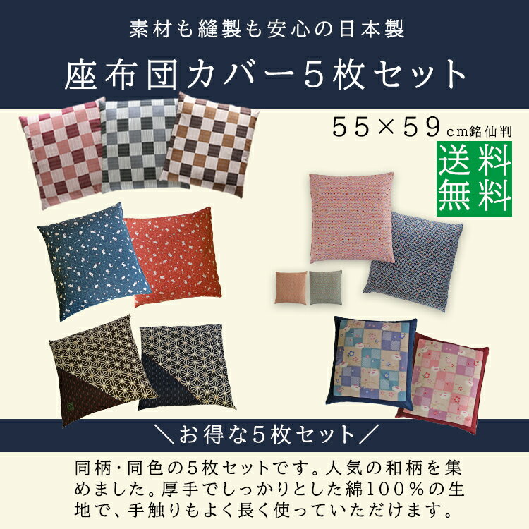 座布団カバー5枚組 55X59 銘仙判 ざぶとんカバー 業務用 和室用 ご家庭でも 送料無料 北欧 55 59
