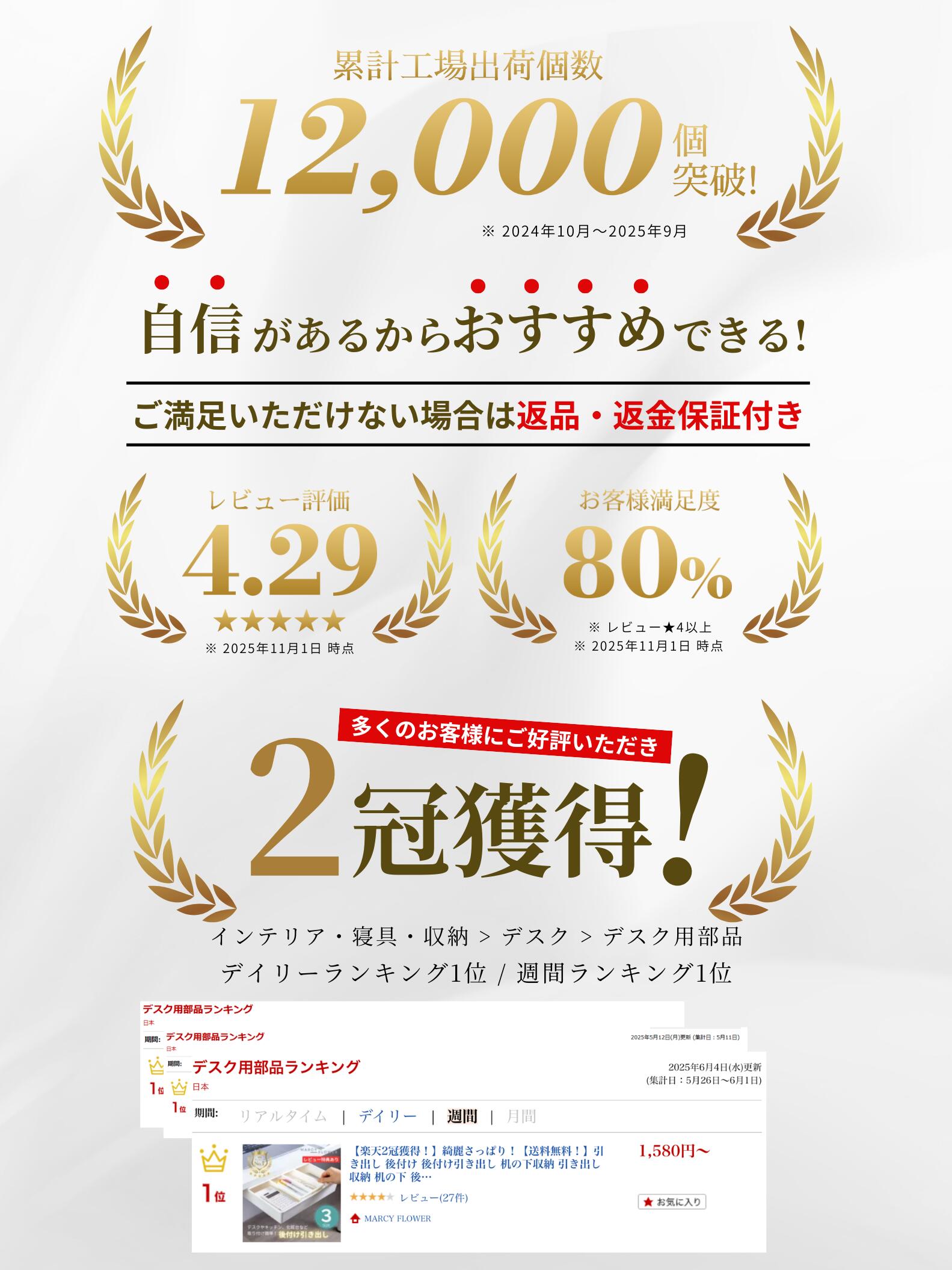 【楽天ランキング2冠獲得】月間優良受賞店☆最大90日保証☆綺麗さっぱり!【送料無料!】引き出し 後付け 後付け引き出し 机の下収納 引き出し 収納 机の下 後付け 引き出し 収納 テーブル下 デスク 机 デスク下 スライド トレー 簡単 大容量 便利 机下収納 トレー スライド