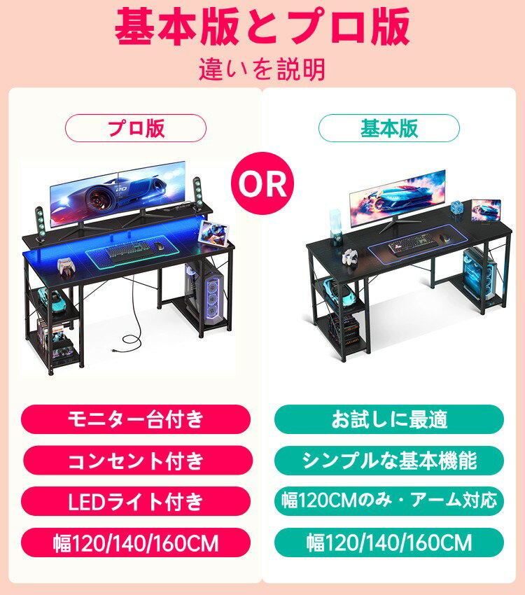 \スーパーセール準備中/アーム付けない★送料無料 幅120-160cm デスク 机 pcデスク パソコンデスク ラック付きデスク ゲーミングデスク 棚付きデスク おしゃれ 省スペース 一人暮らし 在宅勤務 頑丈 ワークデスク オフィスデスク