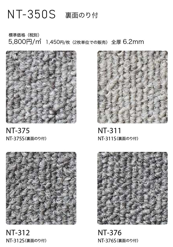 NT-350S サンゲツタイルカーペット NT350シリーズ NT-350S 裏面のり付 NT-311S~NT-382S 50 × 50cm × 20枚入り/1ケース
