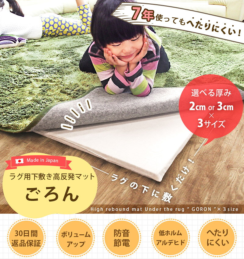 下敷きラグ ラグ用下敷きマット 極厚マット アンダーラグ ラグマット 厚手 ボリュームアップ へたりにくい オールシーズン 防音カーペット クッション 赤ちゃん ベビー 子供 130 185 185 200 250 cm 用 リビング 子ども部屋 一人暮らし ごろん