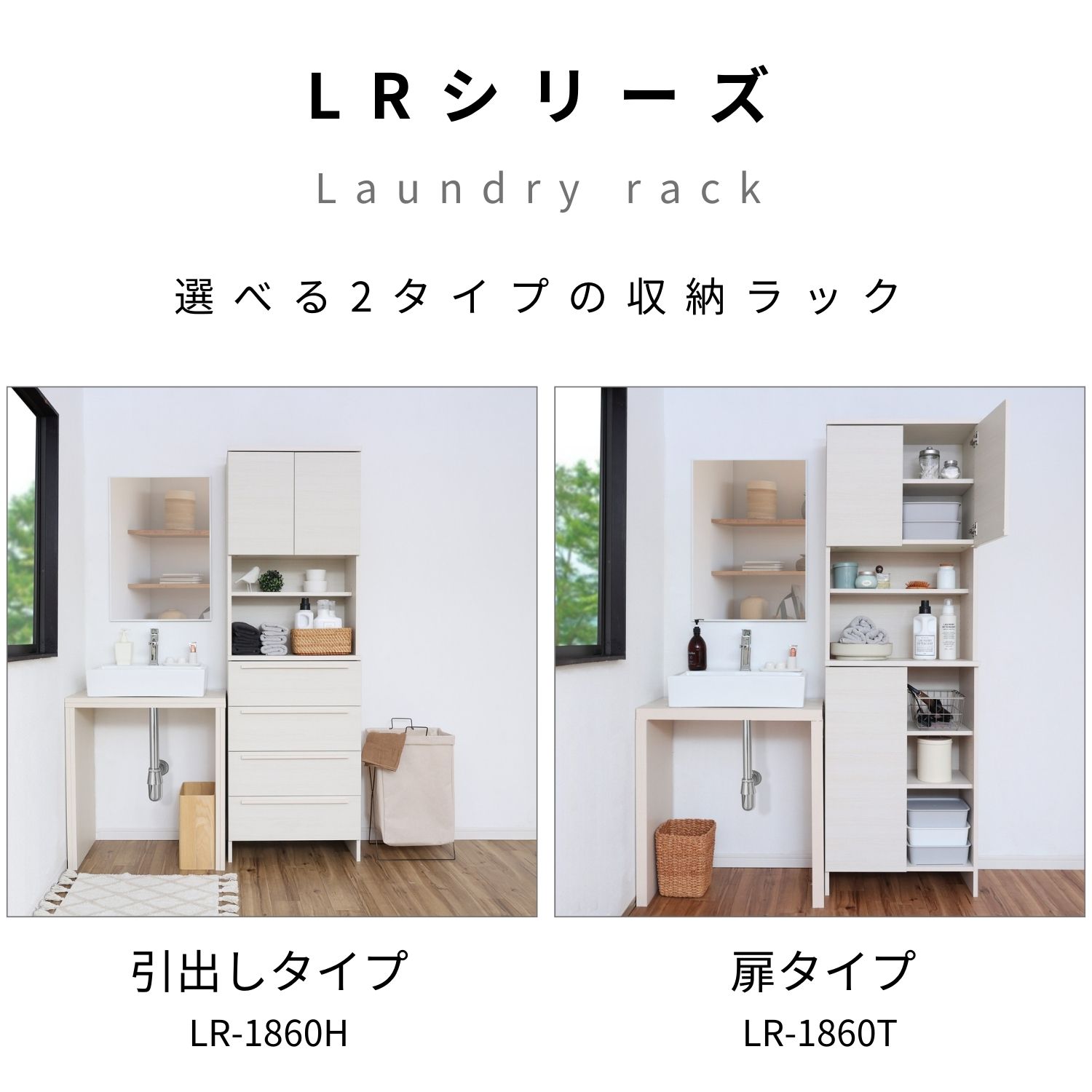 奥行32cm洗濯機まわりを整えるスリムな日本製ランドリーラック。棚と扉収納で洗剤やタオルをすっきり整理!洗面所だけでなくリビングや寝室の収納棚としても◎