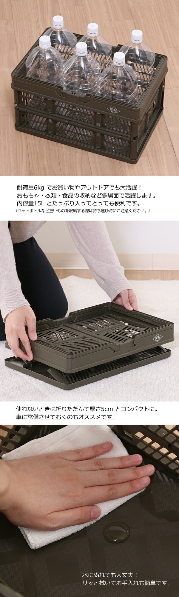 商品説明 ちょっとしたお出かけや、アウトドアに! 食品のストックボックスとして! 整理整頓など、様々な用途に大活躍な収納ボックスです! 使わないときは、コンパクトに折りたたむことができます。 ワンタッチで組み立ても簡単!積重ねてお使いいただけます。 サイズ 【折りたたみ時】幅約38cm×奥行約25.5cm×高さ約5cm<br> 【組み立て時】幅約38cm×奥行約25.5cm×高さ約20...