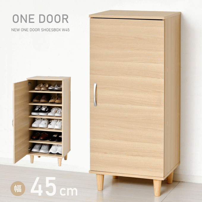 New ワンドアシューズボックス 幅45cm ナチュラルの解説 靴は最大12足収納可能。移動棚で靴の高さに合わせて棚の位置を変えることができ、ショートブーツ(高さ約29cmまで)なども収納可能。脚を外せば2台積み重ねることができるので収納力がアップします。 ・固定棚2ヶ所、可動棚3枚(3.2ピッチ3ヶ所移動) ・2台を連結したときの高さ 約198cm New ワンドアシューズボックス 幅45cm ...