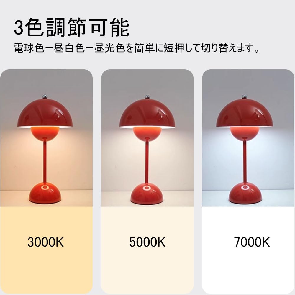 3色調色可能:昼光色ー昼白色ー電球色を簡単に短押して切り替えます。無階段調光可能:場合により長押して明るさを自由に調節できます。 ledチップ搭載、発光均一&省エネ&目に優しい。透過率が高いpcカバー採用、発光がより柔くて明るいです。タッチ式スイッチ、触っただけて点灯します。 バッテリー内蔵式のポータブルランプ、組込型LEDを搭載した持ち運び可能な照明になって、簡単に持ち運びが可能で、シェードから...