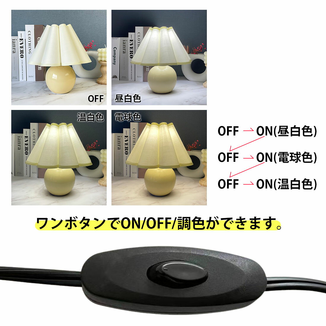 ふっくらとした大き目のプリーツシェードがとっても可愛いテーブルランプです。 セラミック製の台座が上品な印象でお部屋を彩ります。 昼白色、電球色、温白色、3色の調色が可能なのでお部屋の雰囲気に合わせたり、気分によって変化をお楽しみ頂けます。 ライトを点灯しなくても可愛いデザインはインテリアとしても重宝します。 優しい灯りなのでちょっとした明かりが欲しい時にスイッチ一つで点灯ができます。 操作はシンプ...