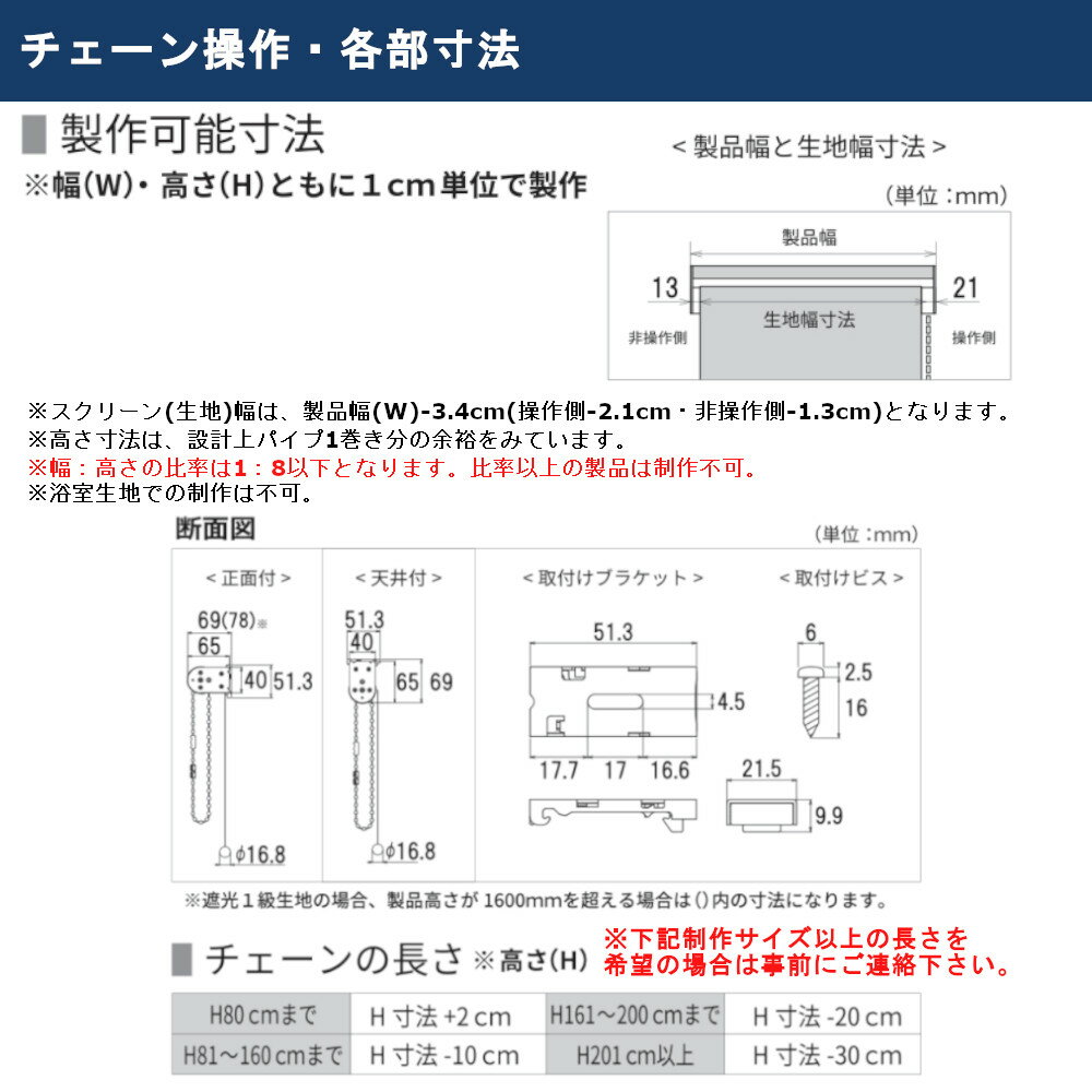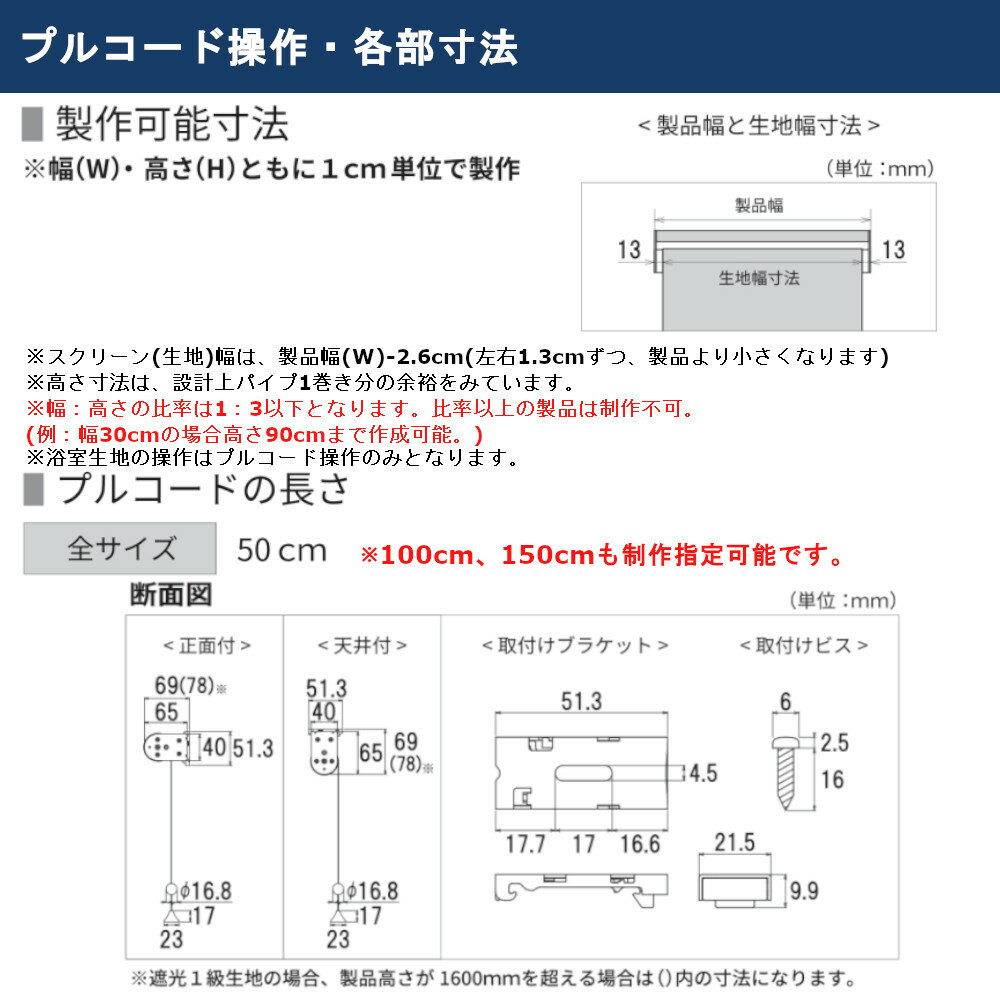 ■メーカー:立川機工(株)(タチカワブラインドグループ) ■生地タイプ:ココルンウォッシャブル/ココルン遮熱ウォッシャブル ■仕様:標準タイプ ■サイズ:幅61〜90cm・高さ181〜200cm ■操作方法:プルコード操作/チェーン操作(右操作または左操作) ■取付け方法:天井付け/正面付け ■部品色:オフホワイト/ダークブラウン ■ブラケット個数:2個 ※付属のビスは木下地用です。木下地以外では...