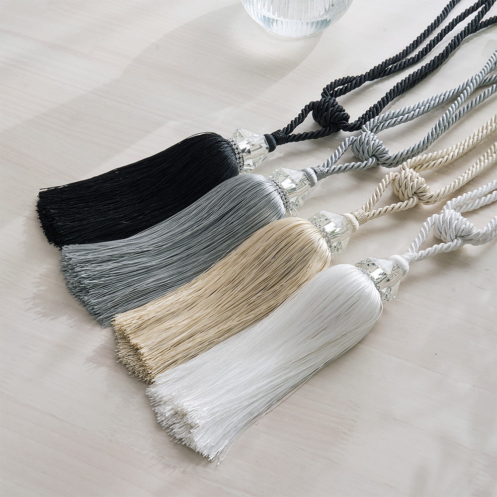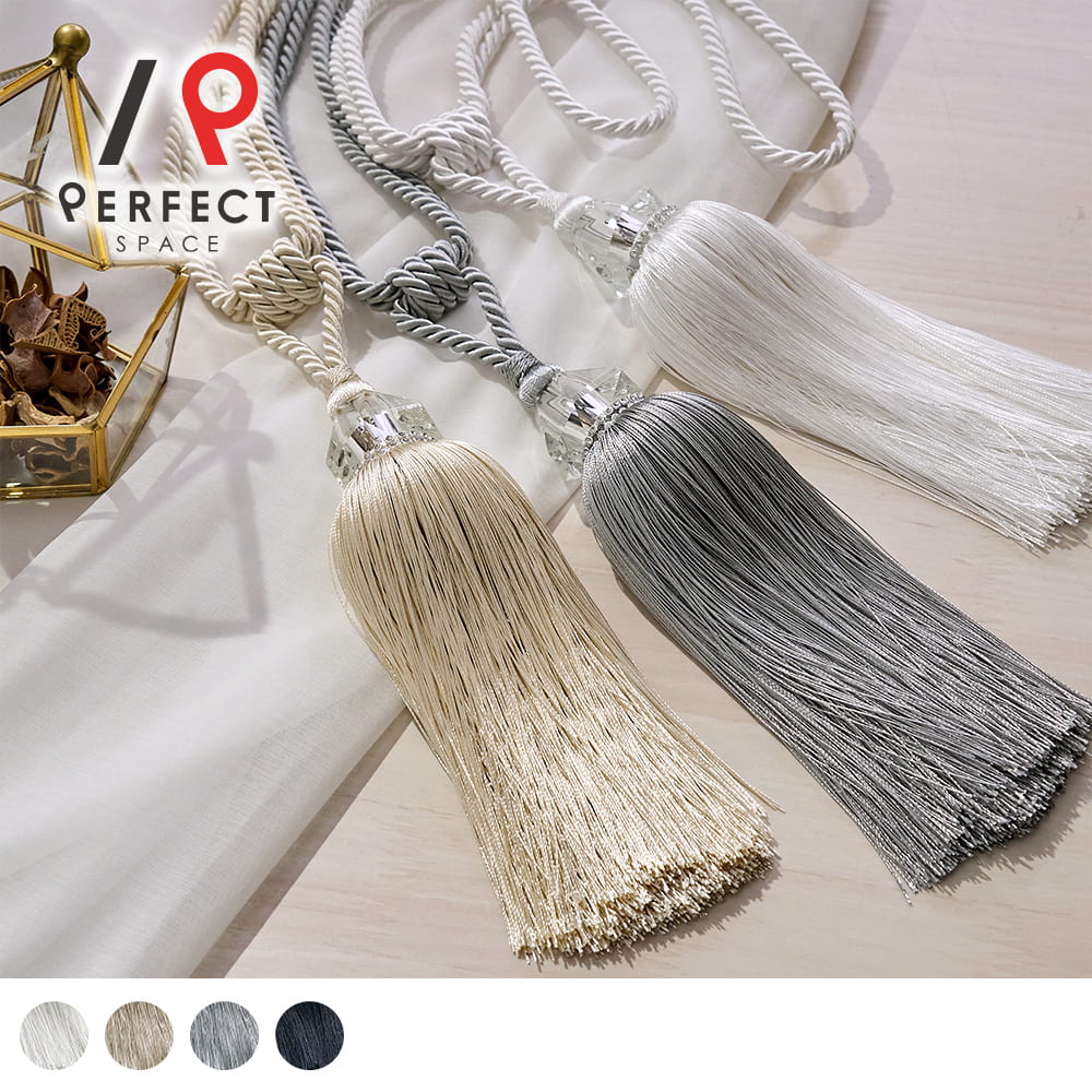 タッセル カーテンタッセル おしゃれ エレガント ラグジュアリー 艶感 キラキラ フリンジ 房 グレー ベージュ ホワイト 黒 ブラック 白 ゴージャス 大人可愛い