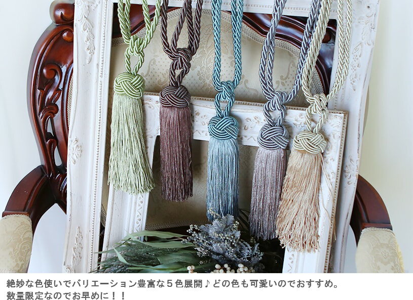 【最短・当日出荷】 カーテンタッセル カーテン タッセル おしゃれ かわいい 数量限定 アンティーク ビンテージ シャビーシック エレガント ベージュ ブラウン グレー
