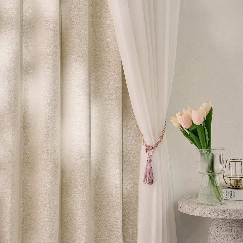 ¥1980〜(税込) この商品のチャームポイント 繊細な美がきらめく、フェミニンタッセル「シュクレ」 細い糸を丁寧に撚り合わせたコードは控えめな光沢がきらめき、優雅に広がる房は揺れるたびに静かなときめきを運びます。 カラーは、やさしい色合いの3色展開。 砂糖菓子のようなミルキーカラーが、カーテンの可愛らしいアクセントに。 しっとりとまとまりのある質感が、エレガントな佇まいをより一層引き立ててくれま...