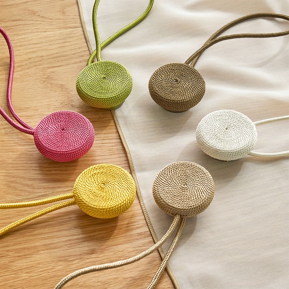 タッセル カーテンタッセル おしゃれ カジュアル かわいい 丸い マグネット アレンジ ベージュ ナチュラル マグネットタッセル ホワイト グリーン イエロー ピンク シンプル