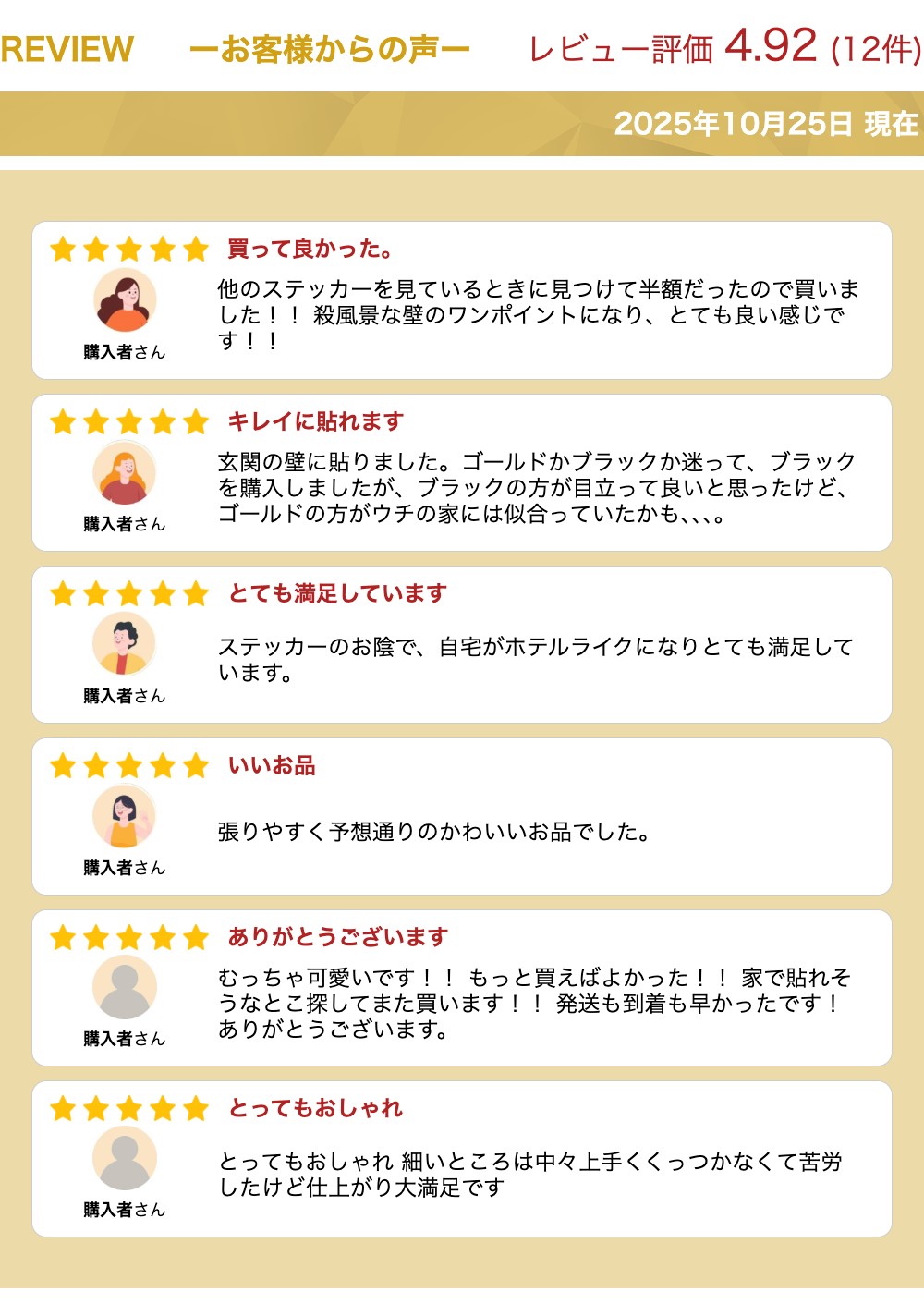 レビュー件数: 12 平均評価: 4.92