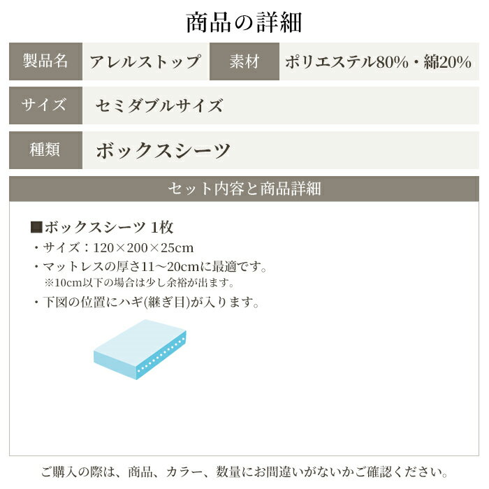 製品仕様 商品名 ミクロガード スタンダード BOXシーツ シングル セミダブル ダブル サイズ/寸法 【サ イ ズ】 シングル ヨコ100cm×タテ200cm×厚さ28cm セミダブル ヨコ120cm×タテ200cm×厚さ28cm ダブル ヨコ140cm×タテ200cm×厚さ28cm 素材/材質 ポリエステル100% 【商品形状】マットレス用(周辺ゴム使用) ■株式会社テクセットは帝人株式...