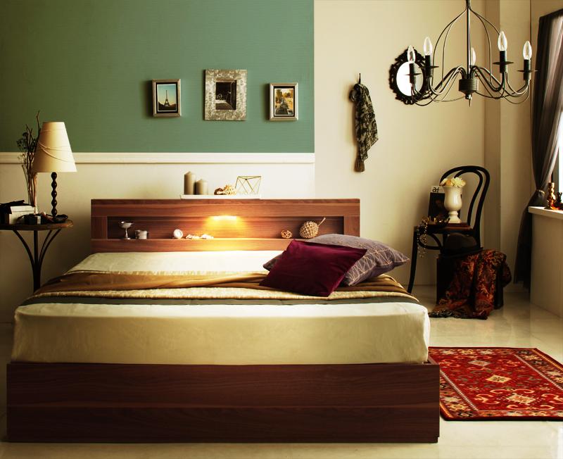 "収納ベッド ダブル【Ultimus】【ボンネルコイルマットレス:ハード付き】ウォルナットブラウン LEDライト・コンセント付き収納ベッド【Ultimus】ウルティムス"""