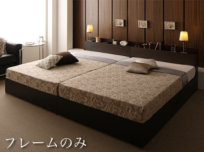 "収納ベッド ワイドキング280(ダブル×2)【Deric】【フレームのみ】ダークブラウン 棚・コンセント・収納付き大型モダンデザインベッド【Deric】デリック"""