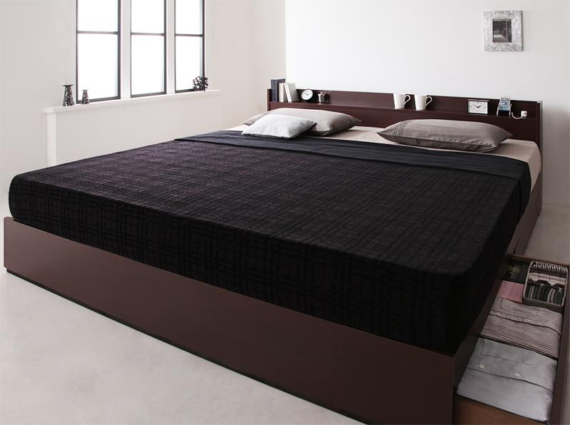 "収納ベッド キング【EverKing】【マルチラススーパースプリングマットレス付き】 ダークブラウン 棚・コンセント付収納ベッド【EverKing】エヴァーキング【代引不可】"""