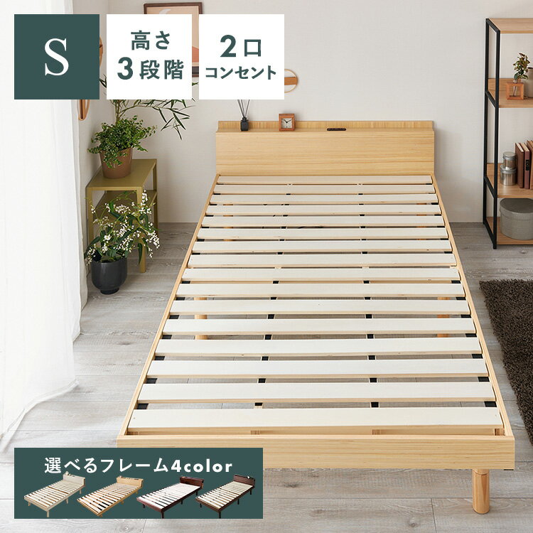 新生活 一人暮らし ひとり暮らし 新生活応援 ベッド ベッドフレーム 木製 高さ調整 すのこベッド サイズ USBポート 2口コンセント 棚 シンプル