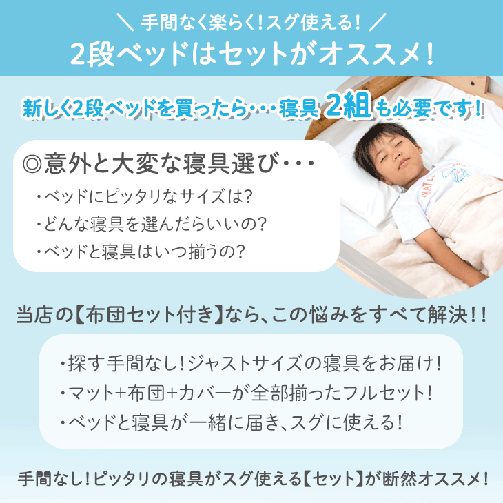 ▼メールでのお問い合わせはこちらbaby-days@shop.rakuten.co.jp▼ ご一緒にこちらのブランケットはいかがでしょうか ▼moket lightmoket リラックス効果が高まる▼ ひのきタイプもございます ▼ 2段ベッドにピッタリ▼ おすすめの敷布団はこちら ▼清潔仕様の合繊綿抗菌・防臭・防ダニ・速乾オールシーズン対応の羊毛混調温・抗菌・防臭 マットレス2枚付▼ お得なセット...
