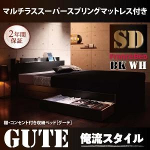 "収納ベッド セミダブル【Gute】【マルチラススーパースプリングマットレス付き】 ブラック 棚・コンセント付き収納ベッド【Gute】グーテ"""