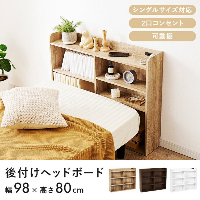 ヘッドボード 後付け ベッド用 シングル 枕元 幅98 × 奥行20 × 高さ80cm ナイトテーブル ベッド収納 コンセント付 収納棚 飾り棚 収納 シェルフ ラック ディスプレイ 隙間ラック