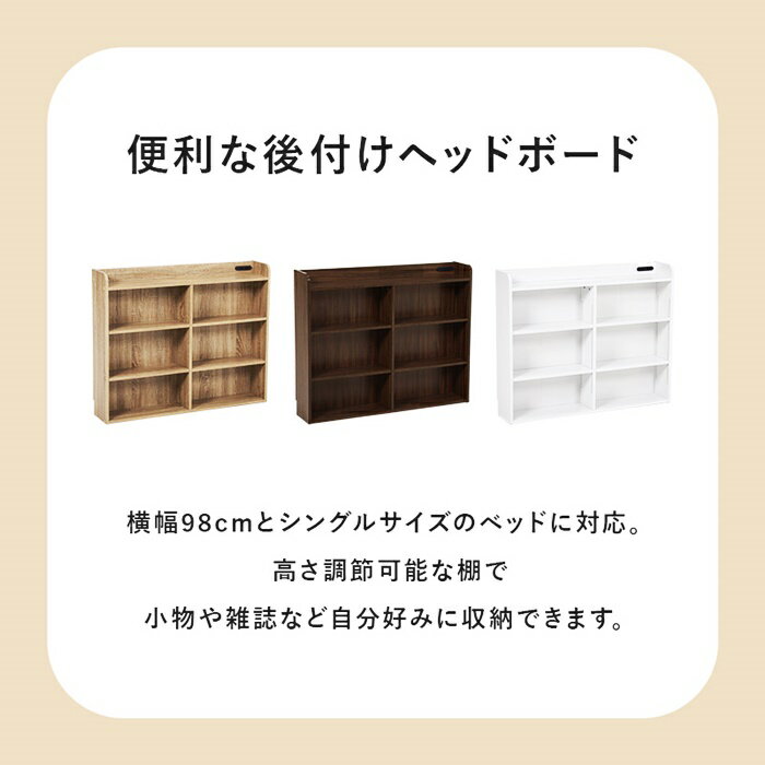 ヘッドボード 後付け ヘッドボードのみ シングル用 コンセント付き 収納棚 おしゃれ スリム 宮棚 本棚 モダン 木製 マットレス棚 布団用 シンプル 木目調 マットレス用 デザイン 飾り棚