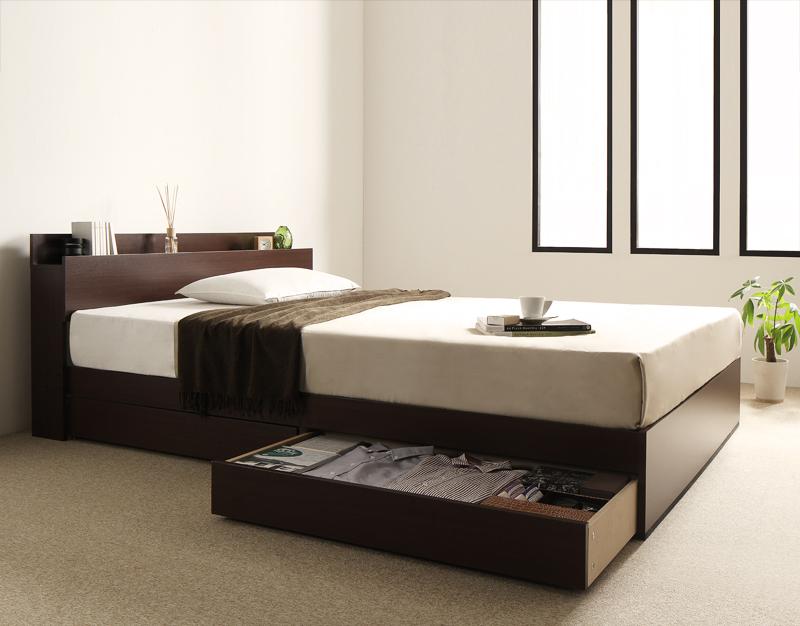 "収納ベッド シングル【virzell】【国産ポケットコイルマットレス付き】 ダークブラウン 棚・コンセント付き収納ベッド【virzell】ヴィーゼル【代引不可】"""