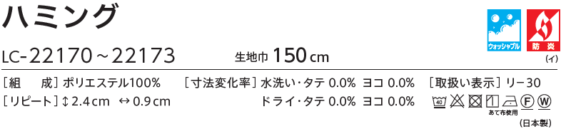 商品名リリカラ コントラクトカーテンオーダーカーテン福祉施設・医院ハミングLC-22170〜22173サイズカーテンを1cm単位でオーダーできます。幅は、レール幅からゆとり分の1.05をかけてください。丈は、カーテンの総丈をお知らせ下さい。掃出し窓は、床に当たらないように1cm引いてください。セットレースは、正面から裏のレースが見えないように、1cm短めの注文が一般です。片開き両開き片開きのカーテ...