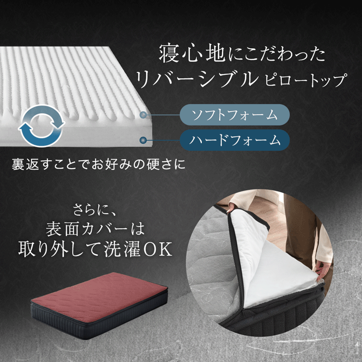 ピロートップマットレス ポケットコイル マット シングル セミダブル ダブル クイーン ポケットコイル コイルマットレス ベッドマット ベッドマットレス エッジサポート S SD D Q 圧縮