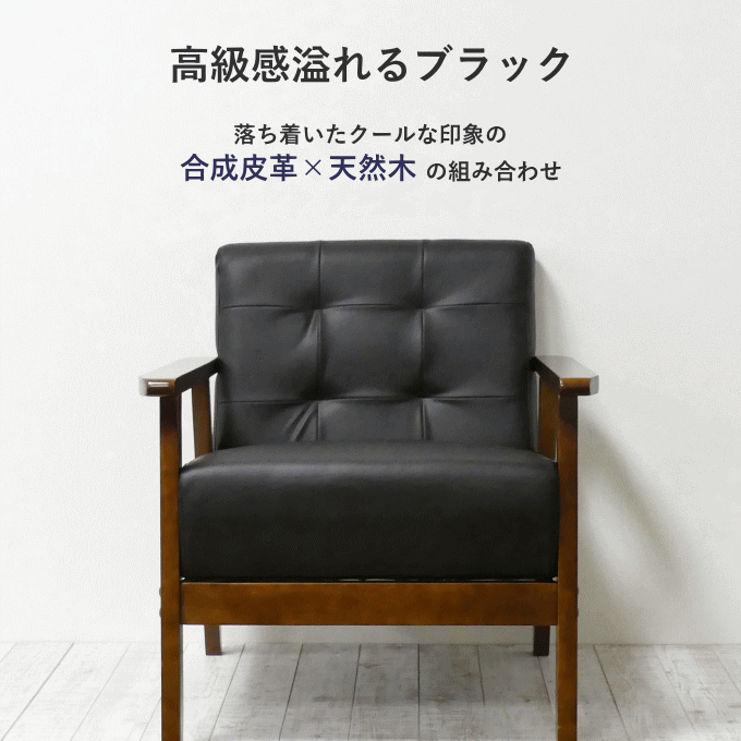 ソファ ソファー レトロ モダン アンティーク sofa コンパクト ワンルーム ソファ レトロソファ レザー 革調 ソファ 木製フレーム 黒 ブラック カフェ風 frie down