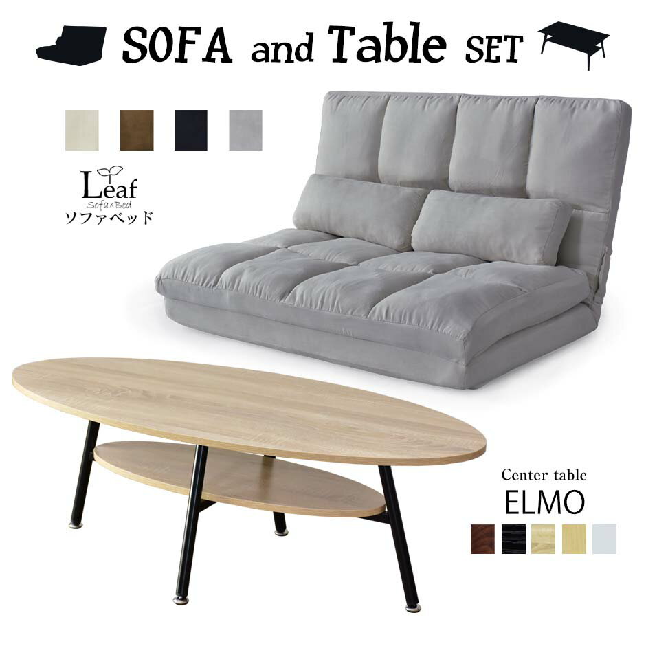 ソファベッド センターテーブル セット ソファ ベッド ローソファ リクライニング 1人掛け 2人掛け テーブル 円形 楕円形 木製 棚付き モダン リーフS エルモ