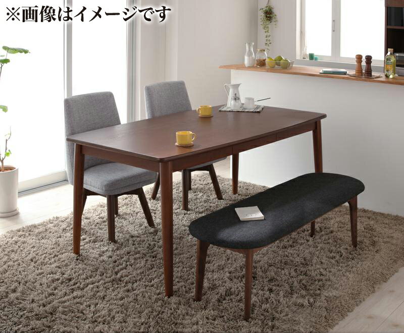 ダイニング 4点セット ダイニングテーブルセット 回転チェア ベンチ テーブル幅135cm 木製 ブラッシング加工 ダークブラウン DBR 組立品【代引不可】