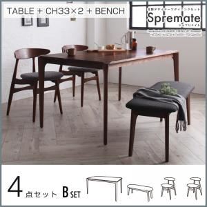 送料無料 ダイニング4点セット 135幅 ウォールナット無垢材 ブラウン色 肘無し椅子 ベンチ 椅子 シンプル かわいい モダン