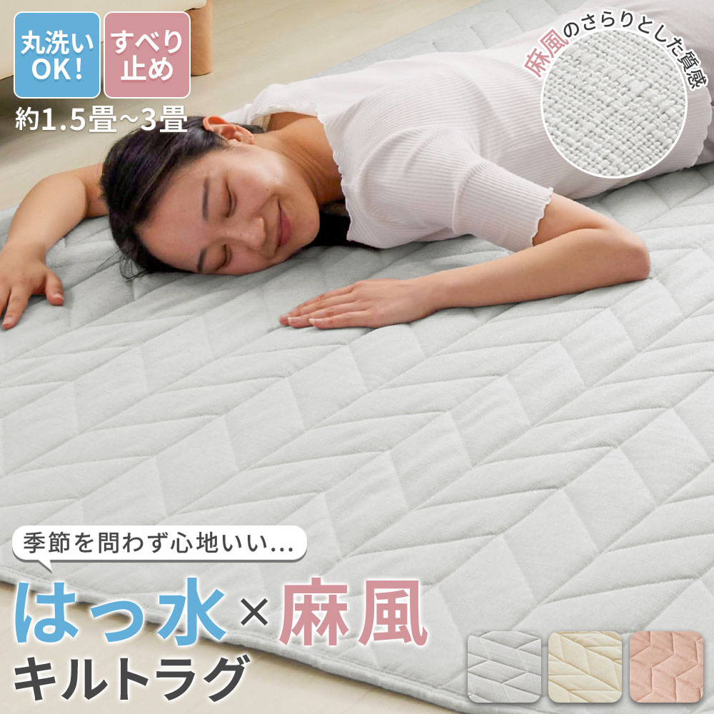 ラグ カーペット 3畳 185cm×185cm ラグマット 麻風 はっ水 キルト加工 滑り止め付き 滑りにくい ウレタン 子供 こども ペット ペット対応 洗える 洗濯機OK 洗濯可 丸洗いOK