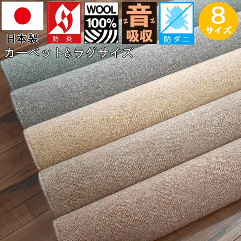 国産 消音 リビング 寝室 和室 洋室 洋間 保育園 幼稚園 春 夏 秋 冬 羊毛 フリーカット シンプル ナチュラル オールシーズン 床暖対応 ホットカーペット対応